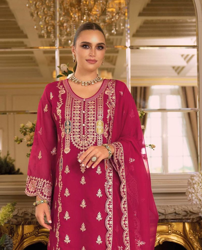 Fashion Dream Women Magenta Chinon Designer Suit Collection