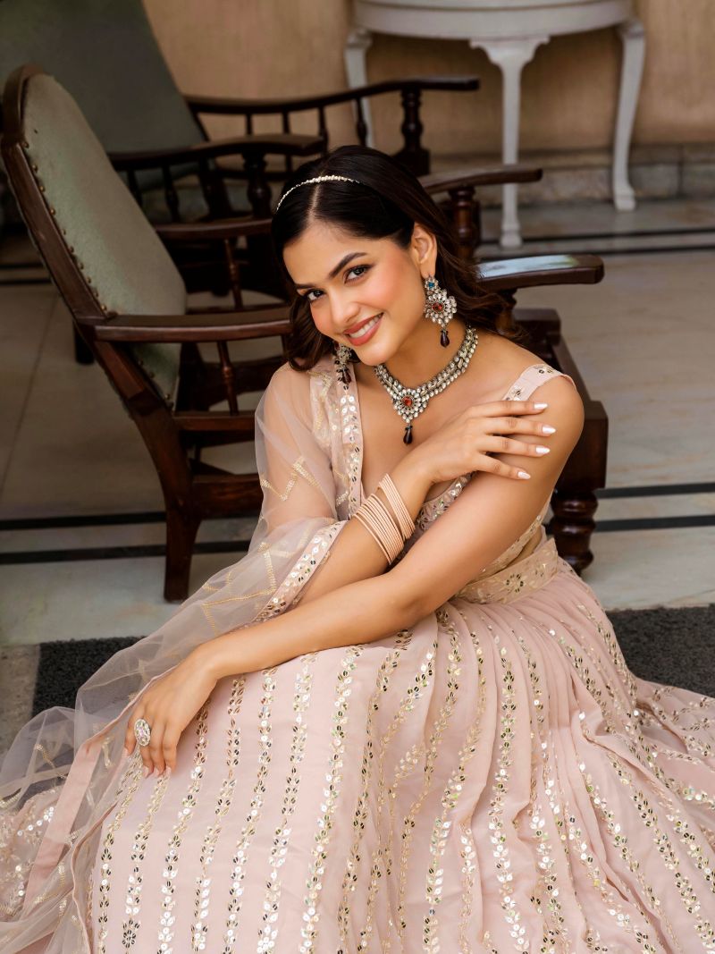 This beautiful Peach Georgette Lehenga Choli is perfect for festive and special occasions. It features elegant zari and sequence embroidery that adds a classy and graceful shine. The semi-stitched A-line lehenga ensures a comfortable and flattering fit.